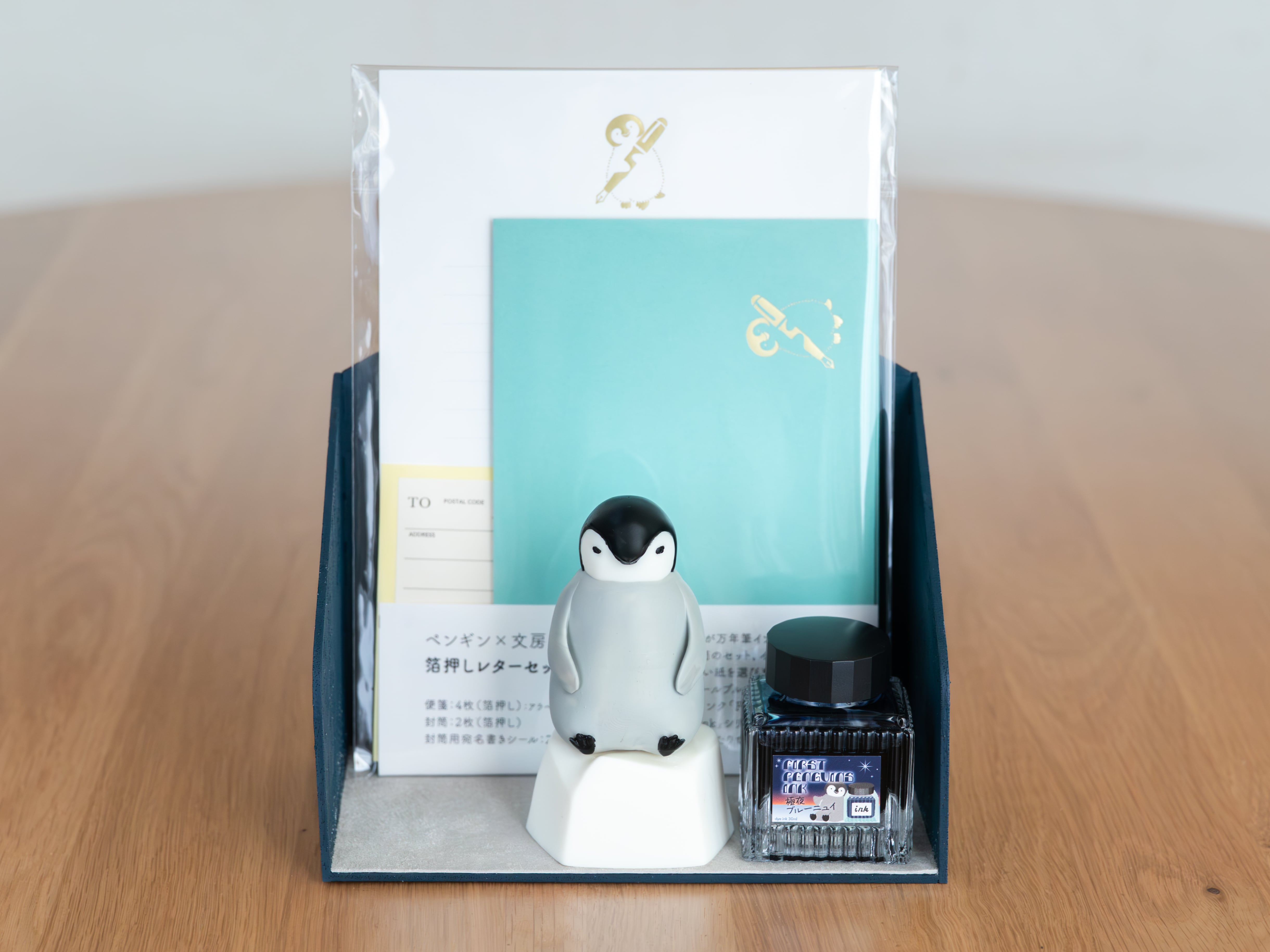 ペンギンの隣にインク瓶を置いてもジャストフィット。
