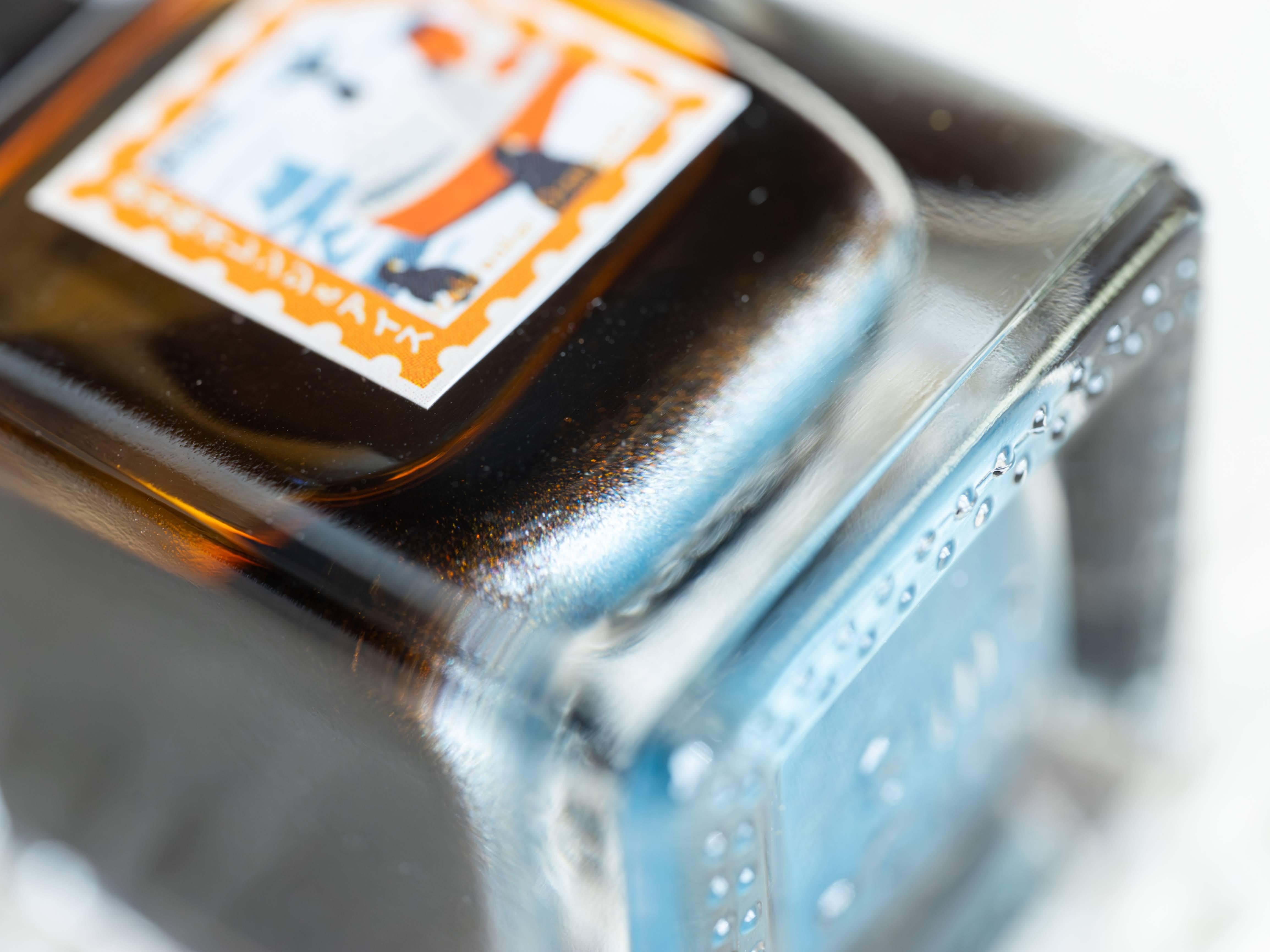 たっぷりとラメが入っているので(写真4枚目:ビンを静かに置いておくと、底にラメが溜まります)、ガラスペンやつけペンでのご使用を推奨しています。